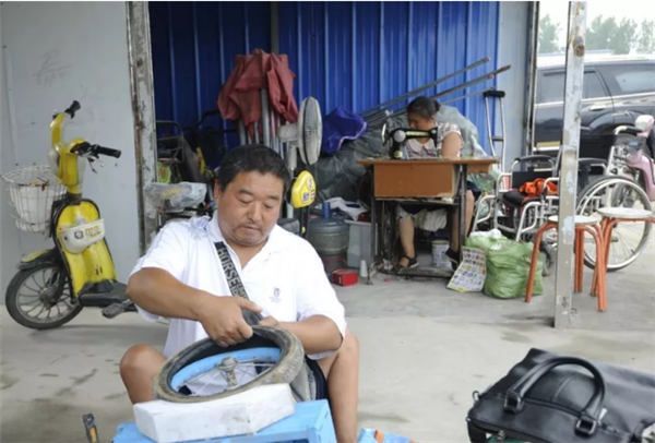 倪国林负责修自行车、拉链、配钥匙,韦萍则为当地人补衣服,虽然每天收入不算多,但夫妇俩却非常阳光,对社会充满了感恩。