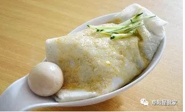 阜阳卷膜就是春卷皮儿几张叠放在一起,再在上面放入在鲜汤里煮熟的面筋、绿豆芽、香菜、海带,用手卷成