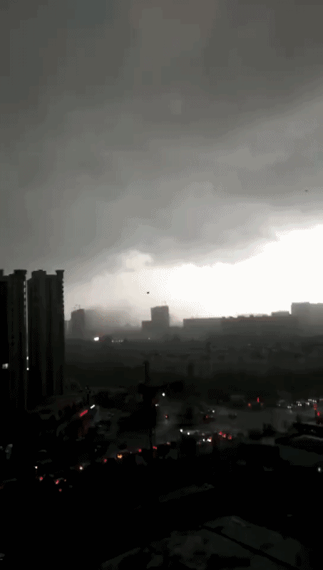 5月16日的冰雹和暴雨席卷阜阳,疯狂程度直至现在还让人心有余悸。↓ ↓ ↓当日在颍泉区伍明镇苏集街头,一棵粗壮树木被大风刮倒,压断道路对面的高压线,挡住了一辆轿车的去路。随后,一男